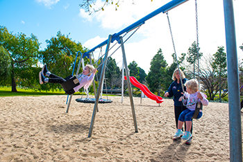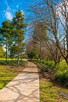 The park has large and small gazebos, water features, toilets, barbecues and inter-connecting paths.
